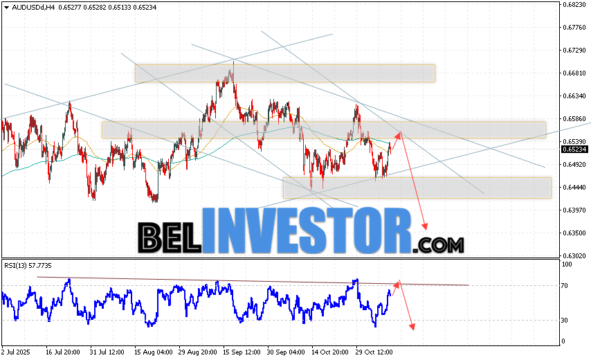 Австралийский Доллар Прогноз AUD/USD на 11 ноября 2025 предполагает попытку теста уровня сопротивления вблизи области 0.6545. Далее, продолжение падения котировок пары выше уровня 0.6355. Дополнительным сигналом в пользу снижения пары выступит отбой от линии тренда на индикаторе относительной силы. Отменой варианта с падением станет сильный рост котировок AUD/USD и пробой области 0.6615. Это укажет на продолжение роста котировок с потенциальной целью выше уровня 0.6805.