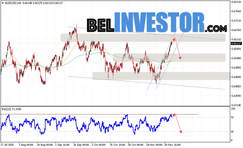 Австралийский Доллар Прогноз AUD/USD на 5 декабря 2025 предполагает попытку теста уровня поддержки вблизи области 0.6635. Далее, продолжение роста котировок пары выше уровня 0.6545. Дополнительным сигналом в пользу подъёма пары выступит отбой от линии тренда на индикаторе относительной силы. Отменой варианта с ростом станет падение котировок AUD/USD и пробой области 0.6685. Это укажет на продолжение падения котировок с потенциальной целью ниже уровня 0.6905.