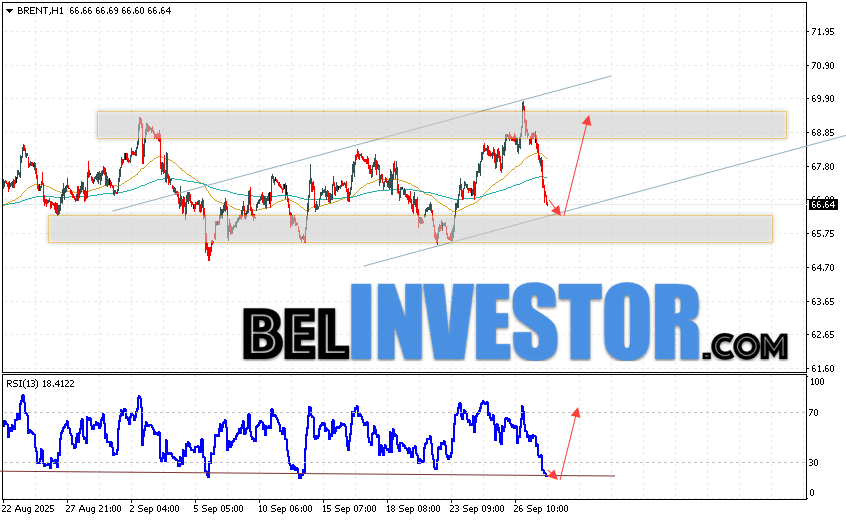 Нефть прогноз Brent на 30 сентября 2025 предполагает попытку теста уровня поддержки вблизи области 66.05. Далее, продолжение роста нефти с целью выше уровня 69.05. В пользу подъёма актива выступит тест линии тренда на индикаторе относительной силы. Отменой варианта роста цены нефти Brent станет падение и пробой уровня 64.55. Это укажет на продолжение снижения котировок в область ниже уровня 60.05.