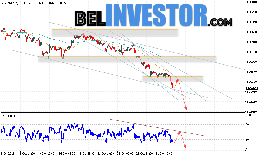 GBP/USD прогноз Фунт Доллар на 5 ноября 2025 предполагает попытку развития бычьей коррекции и теста области сопротивления вблизи уровня 1.3085. Затем, продолжение падения котировок с целью вблизи уровня 1.3245. Дополнительным сигналом в пользу снижения Британского Фунта выступит тест линии сопротивления на индикаторе относительной силы (RSI). Отменой варианта падения станет сильный рост Британского Фунта против Доллара США и пробой области 1.2945. Это укажет на продолжение подъёма на Форекс пары с потенциальной целью выше уровня 1.2735.