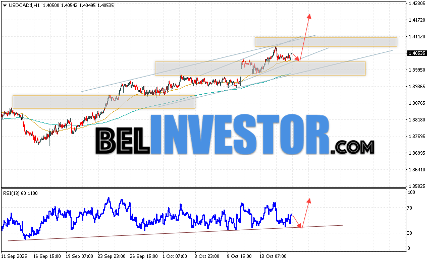 USD/CAD прогноз Канадского Доллара на 16 октября 2025 предполагает попытку теста области поддержки вблизи уровня 1.4010. Далее, продолжение роста в область выше уровня 1.4185. Дополнительным сигналом в пользу подъёма Канадского Доллара на Форекс выступит тест линии поддержки на индикаторе относительной силы. Отменой варианта роста котировок USD/CAD станет падение и пробой уровня 1.3975. Это укажет на продолжение снижения стоимости актива с потенциальной целью ниже уровня 1.3765.