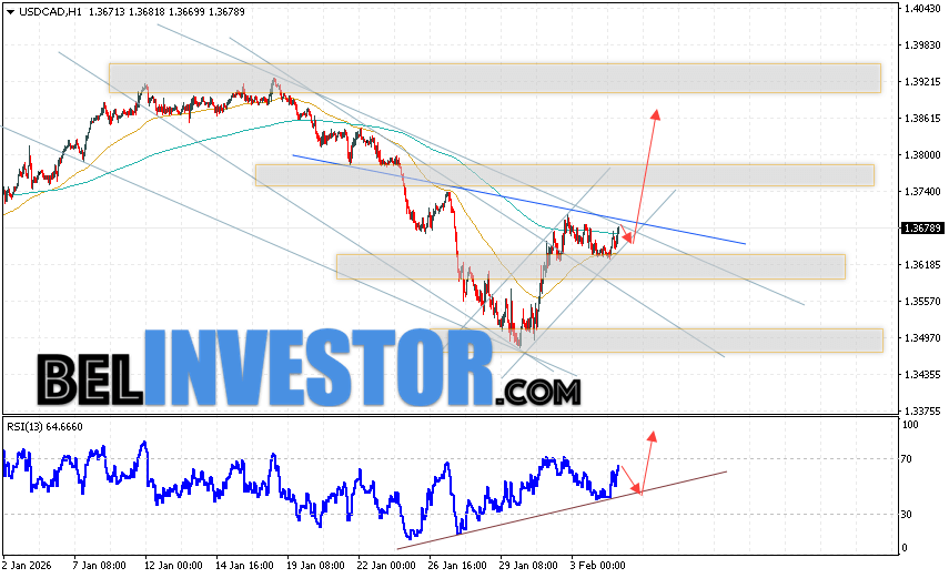 USD/CAD прогноз Канадского Доллара на 5 февраля 2026 предполагает попытку теста области поддержки вблизи уровня 1.3665. Далее, продолжение роста в область выше уровня 1.3865. Дополнительным сигналом в пользу подъёма Канадского Доллара на Форекс выступит тест линии поддержки на индикаторе относительной силы. Отменой варианта роста котировок USD/CAD станет падение и пробой уровня 1.3605. Это укажет на продолжение снижения стоимости актива с потенциальной целью ниже уровня 1.3435.