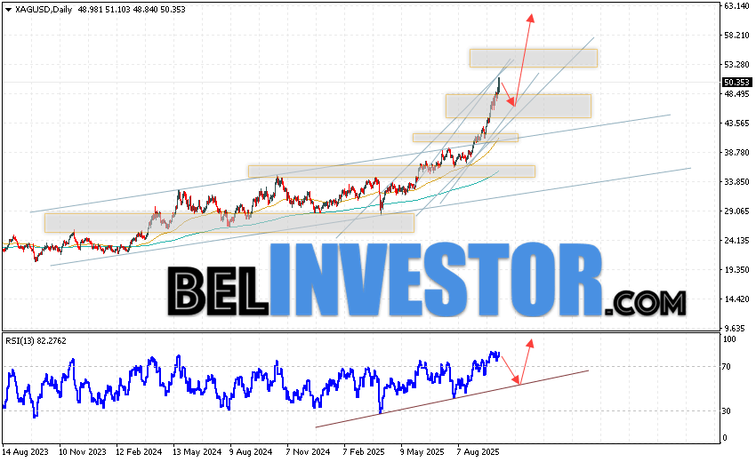 Серебро прогноз XAG/USD на неделю 13 — 17 октября 2025
